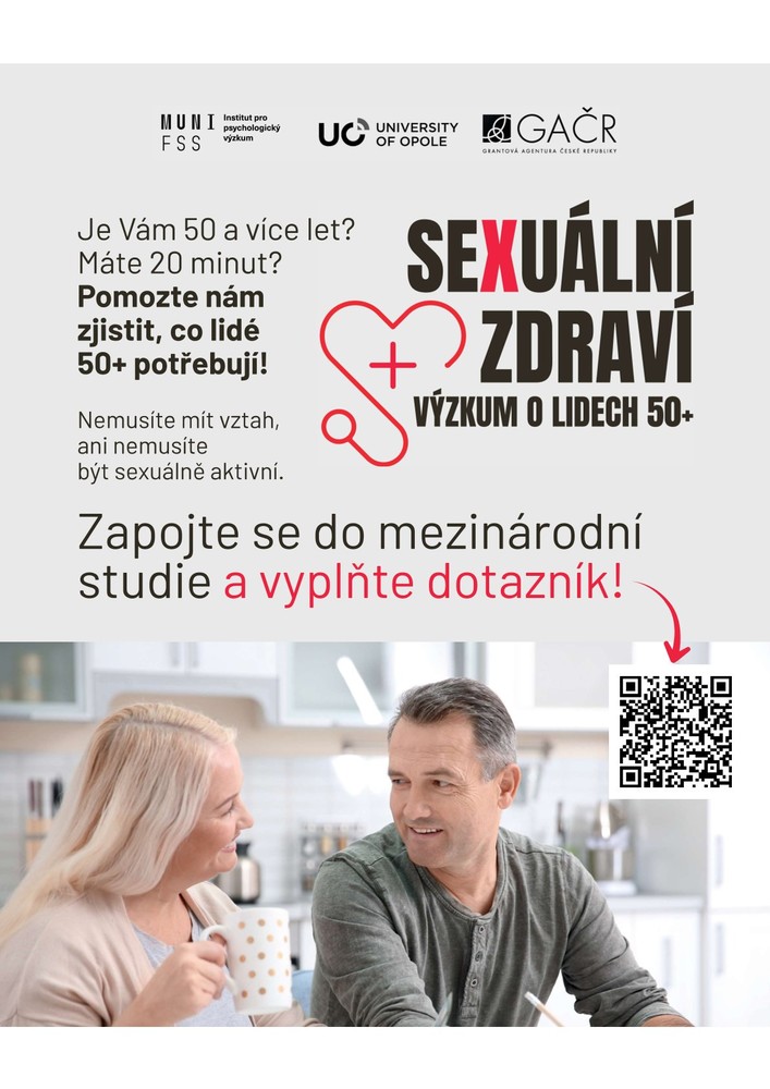 v případě zájmu se můžete zapojit do výzkumu o sexuálním zdraví lidí po padesátce, který realizují psychologové z Fakulty sociálních studií Masarykovy univerzity.
