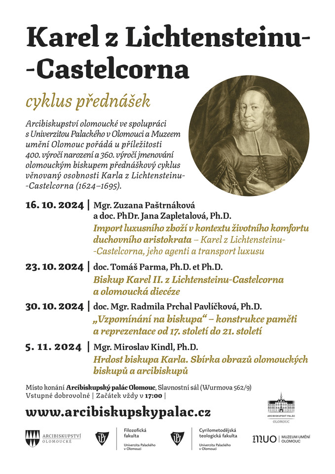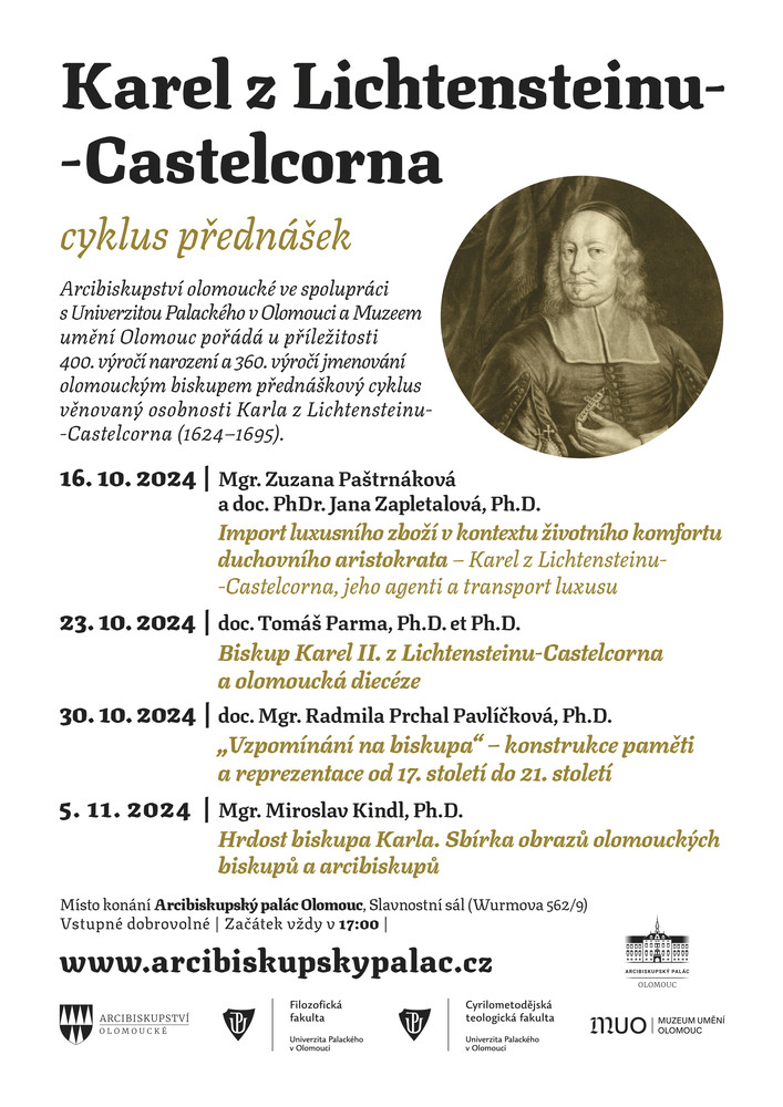 Arcibiskupství olomoucké ve spolupráci s Univerzitou Palackého v Olomouci a Muzeem umění Olomouc pořádá u příležitosti 400. výročí narození a 360. výročí jmenování olomouckým arcibiskupem přednáškový cyklus věnovaný osobnosti Karla z Lichtensteinu-Castelcorna (1624 - 1695).