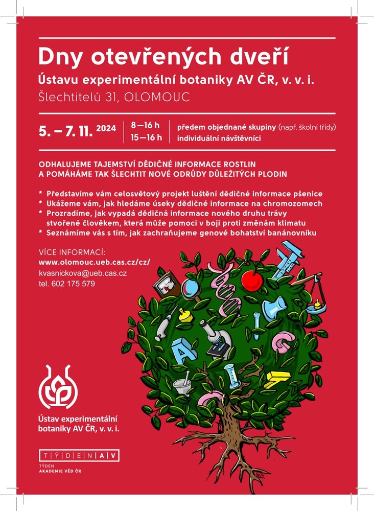 Letos se akce koná od úterý 5. 11 do čtvrtka 7. 11. 2024 v Centru strukturní a funkční genomiky rostlin, ulice Šlechtitelů 31, Olomouc.